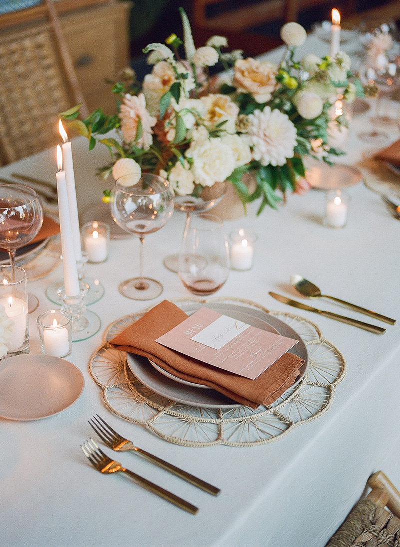 While exploring the estate, we discovered sunlit courtyards, stone pathways, and intimate garden spaces. The floral design featured pastel roses, dahlias, and delicate blooms. In addition, white ranunculus adorned Jessica’s hair, creating a whimsical yet refined style. Meanwhile, soft candlelight and natural California sunlight highlighted every detail. Consequently, every photograph felt timeless and luxurious.