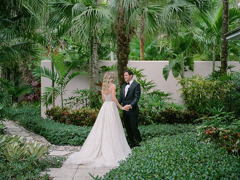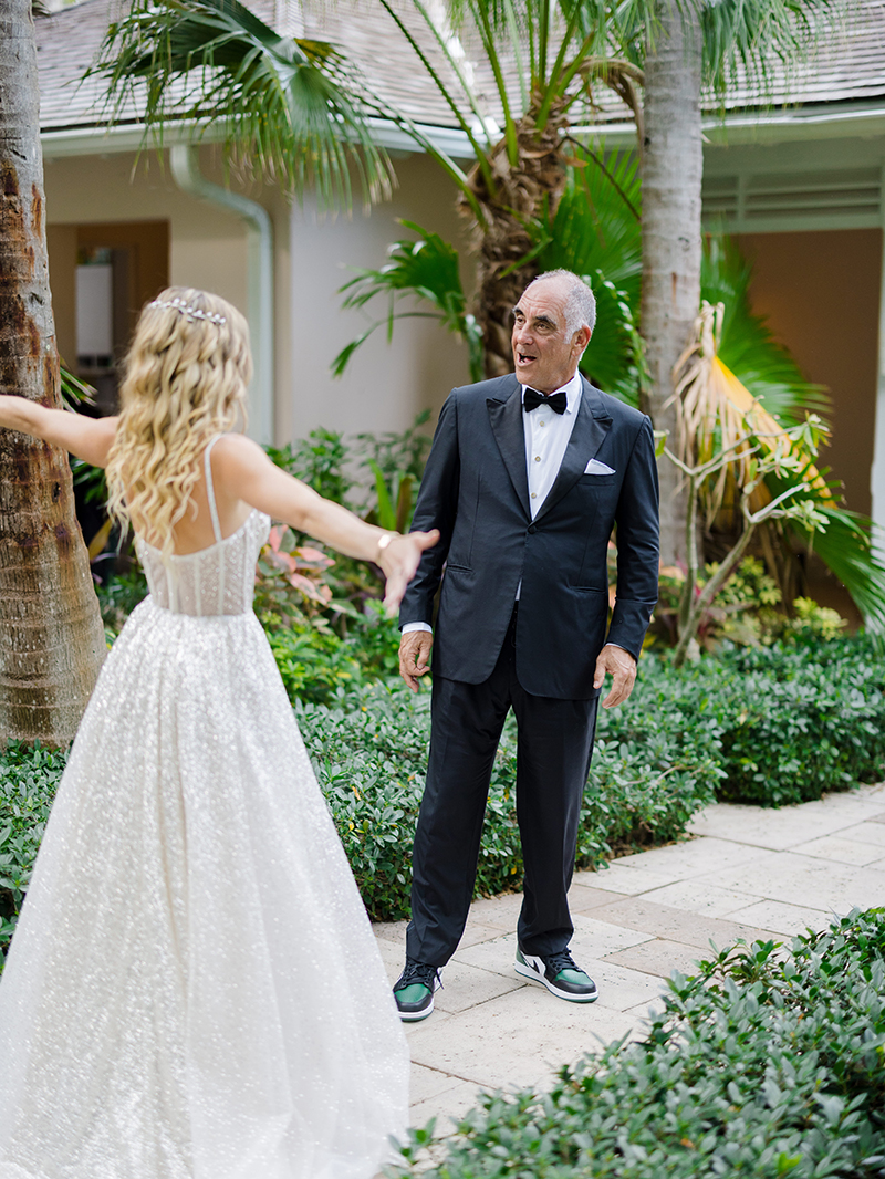 First, Jordan met her father in the garden for a deeply heartfelt first look. Shortly after, Steven joined us beneath the palms. As soon as he turned to see her, emotion overtook them both.