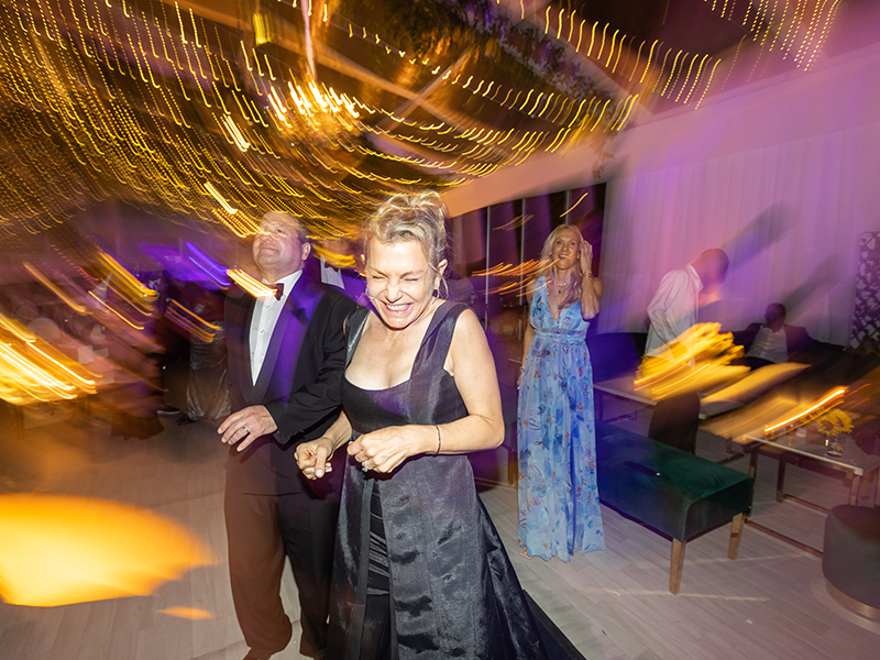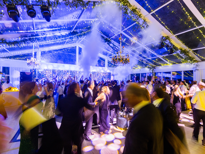 Inside, candlelight glowed warmly against layered florals and elegant table settings. After heartfelt speeches and live performances, the multi-piece band energized the dance floor.